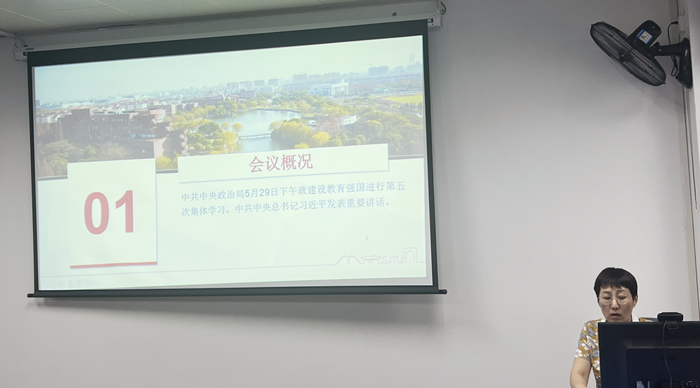 张莉结合习近平总书记在中共中央政治局第五次集体学习时的重要讲话精神,立足学校、学院工作实际,为大家讲授了以“教育强国建设及我们的使命”为主题的党课。课上向大家深入阐释了习近平总书记重要讲话的三个主要方面内容。一是为什么要建设教育强国;二是建设什么样的教育强国;三是怎样建设教育强国。在引领全体党员学深悟透讲话精神的同时,引导大家按照学校党委、学院党总支的要求把学习习近平总书记重要讲话与深入开展主题教育、系统思考谋划学校发展顶层设计、推动构建一流体系内涵建设、做好年度重点工作这几个方面深度融合起来。张莉强调,全体党员工作时既要有宏观思路、战略眼光,也要有微观的基础,接下来要结合学校特别是学院工作作深入思考。