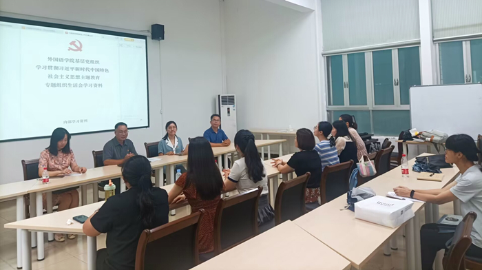 按照学校党委和学院党总支部署要求,2023年9月8日,乐动体育app 教工第二党支部在校本部人文楼207会议室召开学习贯彻习近平新时代中国特色社会主义思想主题教育专题组织生活会。学院教工二支部全体成员参加会议,会议由支部组织委员周小琳主持。